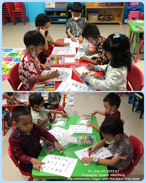 Kindergarten 1 Pineapple : Cognitive - Matching the community helper with the place they work